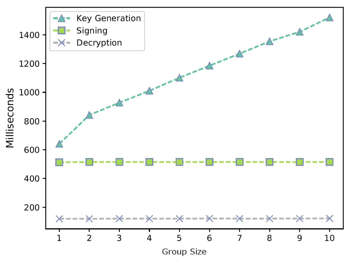 While we demonstrate this resiliency on decryption with three processors, we are efficient for much larger numbers.